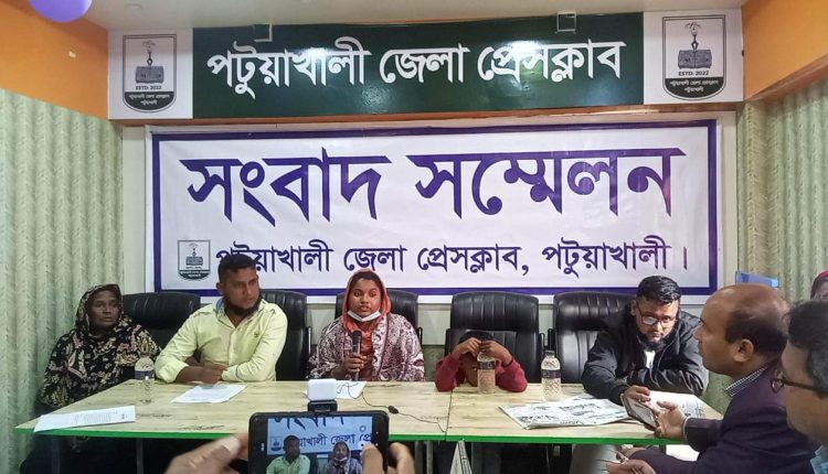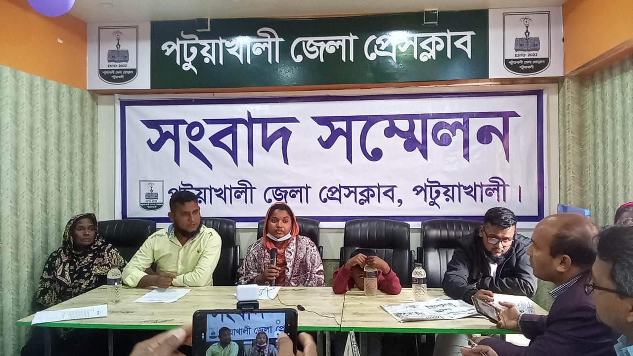 শুক্রবার বেলা ১১টায় পটুয়াখালী জেলা প্রেস ক্লাবে গলাচিপা উপজেলার উত্তর চরকাজল গ্রামের রুবিনা আক্তার নামে এক নারী সংবাদ সম্মেলন করেন।