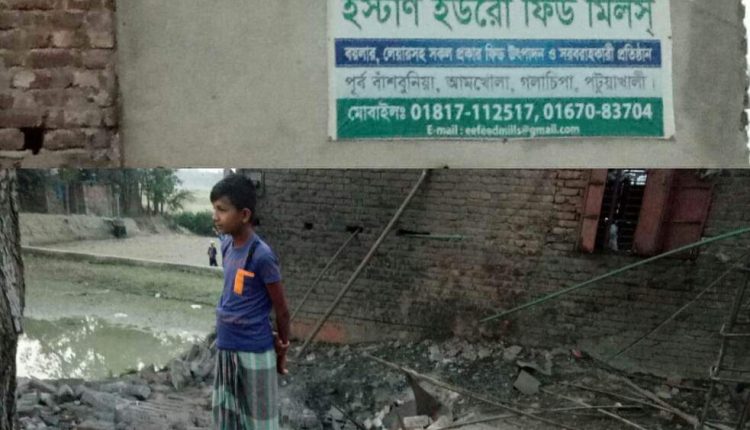 পটুয়াখালী জেলার গলাচিপা উপজেলার আমখোলা ইউনিয়নের কালাইকিশোর এলাকায় (গলাচিপা -পটুয়াখালী) সড়কের পাশে মুরগির খাবার ফিড তৈরীর কারখানায় বয়লার বিস্ফোরণের ঘটনা ঘটেছে এ ঘটনায় এক শিশু গুরুতর আহত।