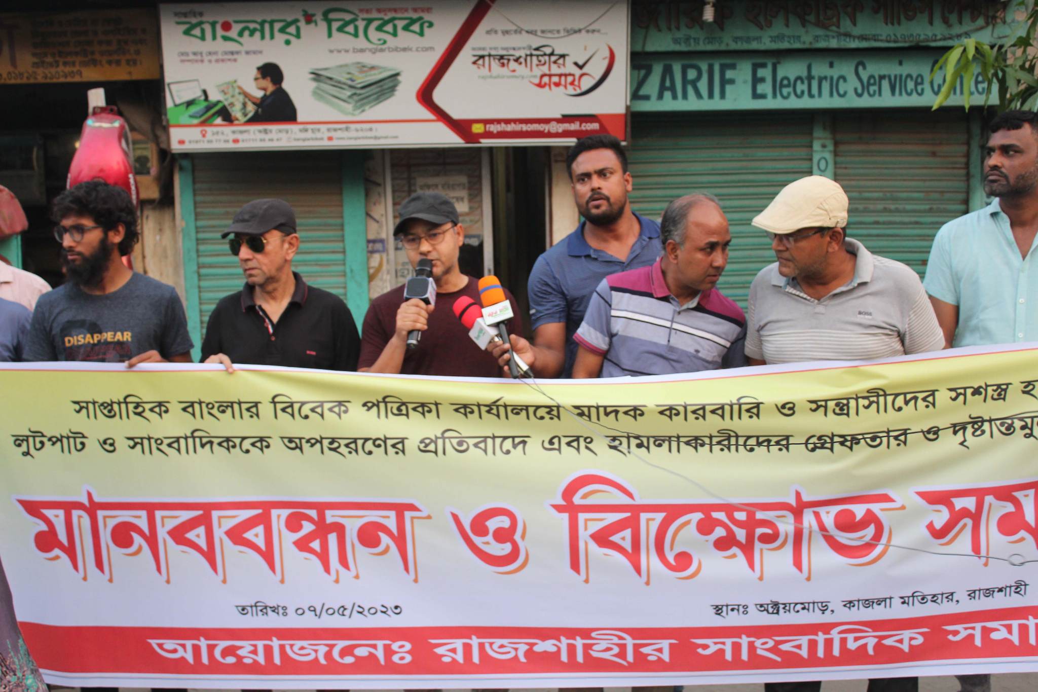 রাজশাহীতে আয়োজিত এক সমাবেশে সাংবাদিক নেতারা হুসিয়ারি উচ্চারণ করে বলেছেন, সাপ্তাহিক বাংলার বিবেক পত্রিকা কার্যালয়ে সশস্ত্র হামলা, লুটপাট ও অপহরণের সাথে জড়িত সব আসামিকে অবিলম্বে গ্রেফতার করতে হবে। অন্যথায় কঠোর আন্দোলন কর্মসূচি ঘোষণা করা হবে। তারা বলেন, আসামিরা চিহিৃত মাদক কারবারী ও সন্ত্রাসী। তারা এলাকায় প্রকাশ্যে ঘুরে বেড়ালেও পুলিশ তাদের গ্রেফতার করছে না। ক্ষমতাসীন দলের কতিপয় নেতার ছত্রছায়ায় আসামিরা পত্রিকা কার্যালয়ে হামলা চালিয়ে ভাংচুর, লুটপাট ও একজন ক্যামেরাম্যানকে অপহরণ করে নিয়ে গেছে। যা স্বাধীন গণমাধ্যম ও স্বাধীন সাংবাদিকতার ওপর নগ্ন হস্তক্ষেপের শামিল।