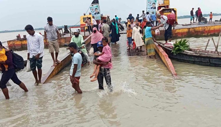 অনেককে পানিতে ভিজে ও নৌকায় করে তীরে উঠতে দেখা যায়। ফেরিঘাটের হোটেল ব্যবসায়ী আমির হোসেন বলেন, নদীতে জোয়ারের পানি বাড়লেই ফেরির গ্যাংওয়ে তলিয়ে যান চলাচল বন্ধ হয়ে জেলা শহরের সাথে সড়ক যোগাযোগ বন্ধ হয়ে যায়। ফেরি ও ট্রলারে পারাপাররত মানুষজনকে পানিতে ভিজে অথবা অস্থায়ীভাবে নৌকায় করে টাকা দিয়ে পার হয়ে তীরে উঠতে হয়। ফেরি ঘাটের
